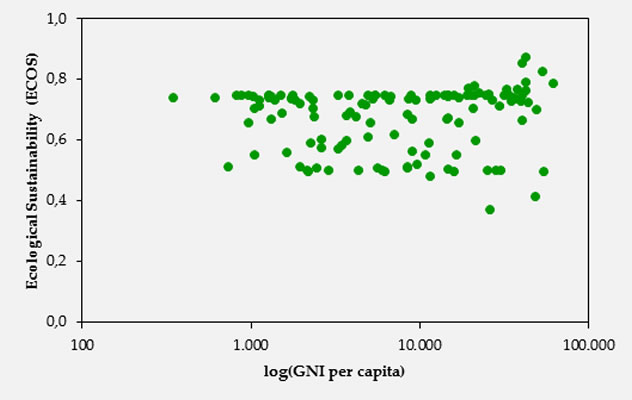 Relationship between ecological sustainability (ECOS) and economic development
